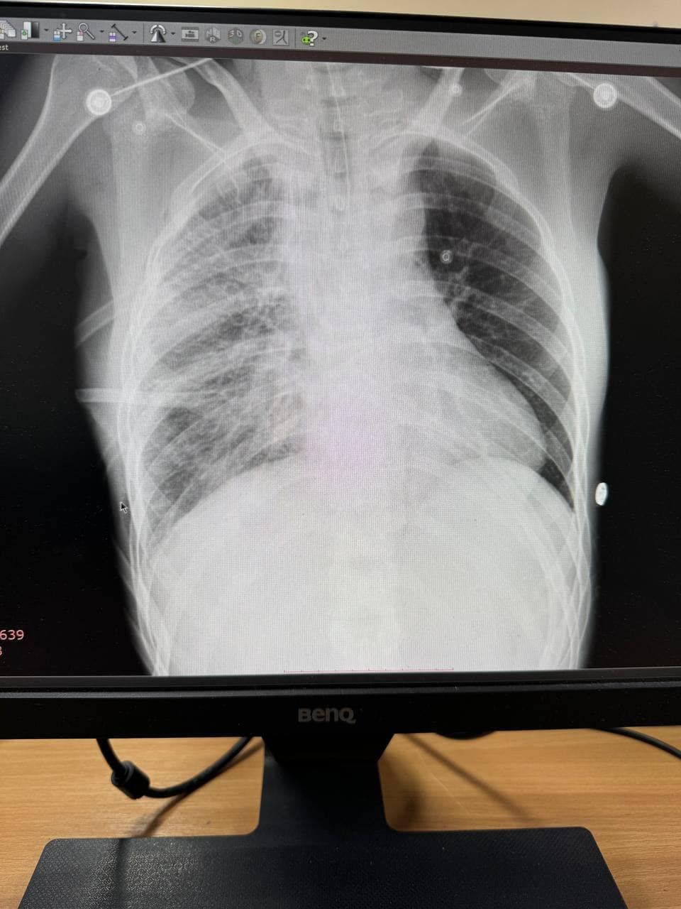 Медики госпитализировали пациента с вблизи проблем, в частности, тяжелым воспалением шеи, разрывом пищевода, воспалительным процессом в клетчатке средостения (участок в грудной полости), гнойным воспалением плевры, инородными телами и опущением желудка.